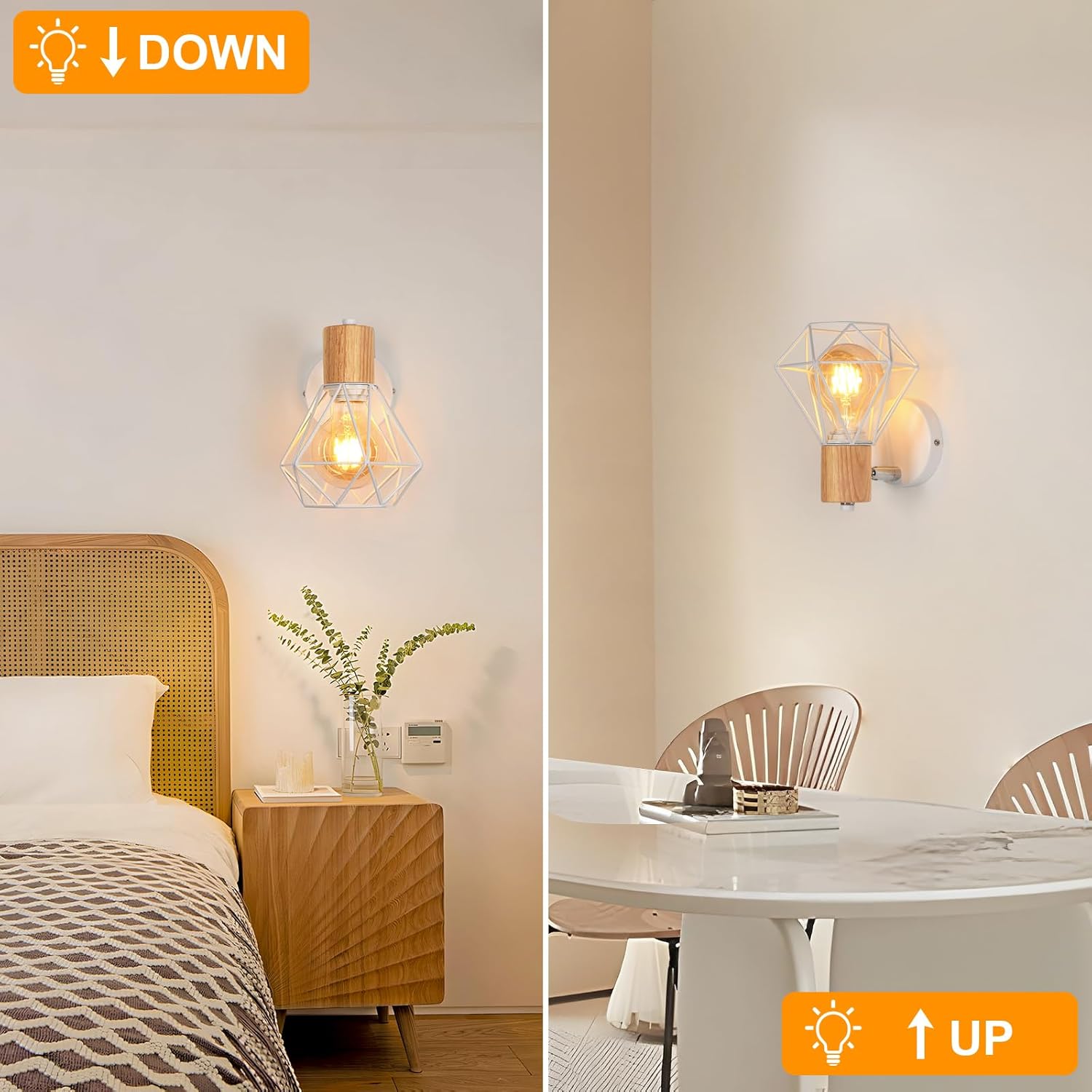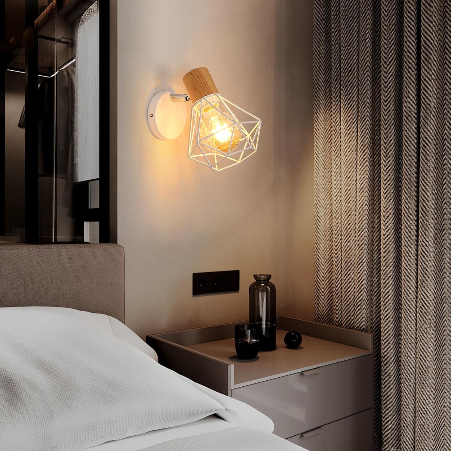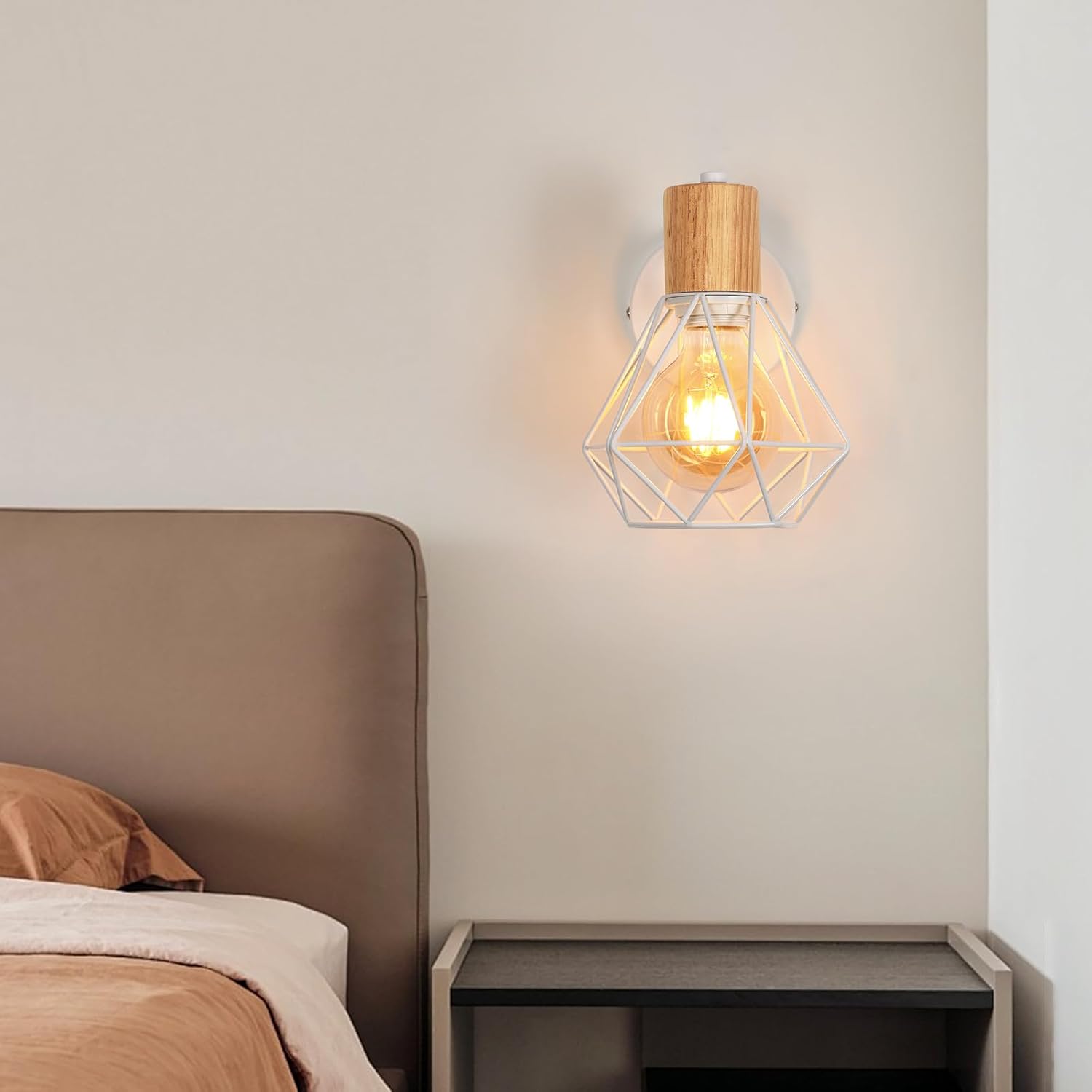 Această aplică de perete cu stil retro-industrial dispune de un abajur deschis tip grilaj alb, combinat cu o bază solidă din lemn natural. Lumina se dispersează armonios prin structura cușcă, oferind o atmosferă caldă, primitoare și estetică. Ideală pentru a adăuga un plus decorativ și funcțional spațiilor tale interioare.
