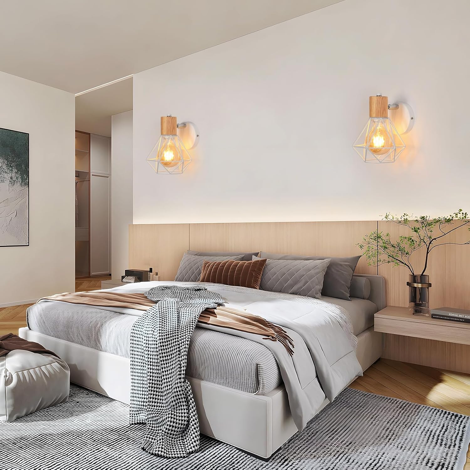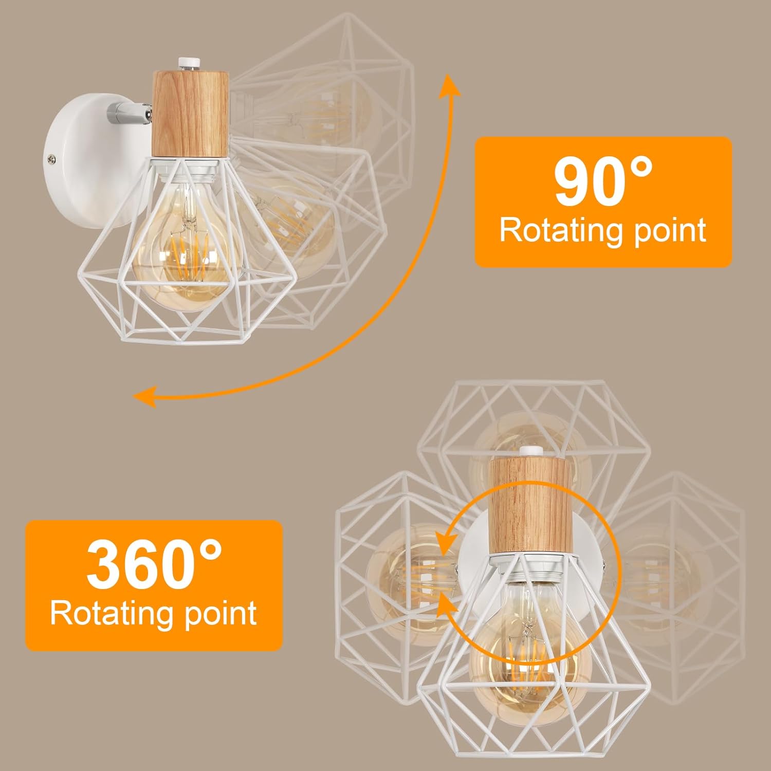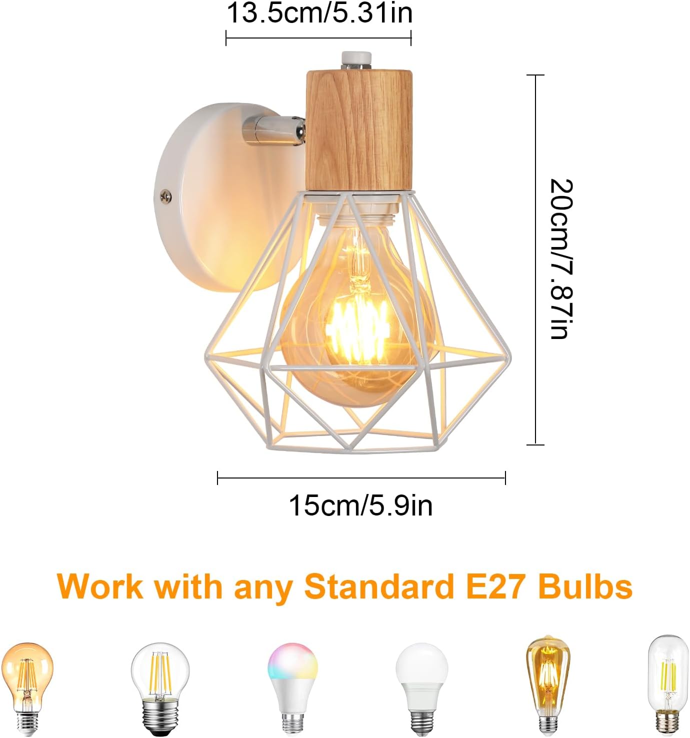 Această aplică de perete cu stil retro-industrial dispune de un abajur deschis tip grilaj alb, combinat cu o bază solidă din lemn natural. Lumina se dispersează armonios prin structura cușcă, oferind o atmosferă caldă, primitoare și estetică. Ideală pentru a adăuga un plus decorativ și funcțional spațiilor tale interioare.