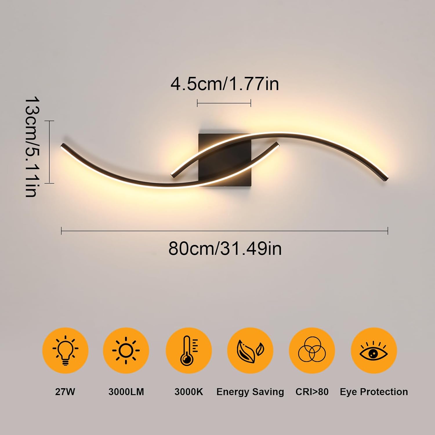 Aplica LED neagră în formă de val 27W combină designul contemporan cu eficiența energetică, transformând orice spațiu într-un interior elegant și primitor.