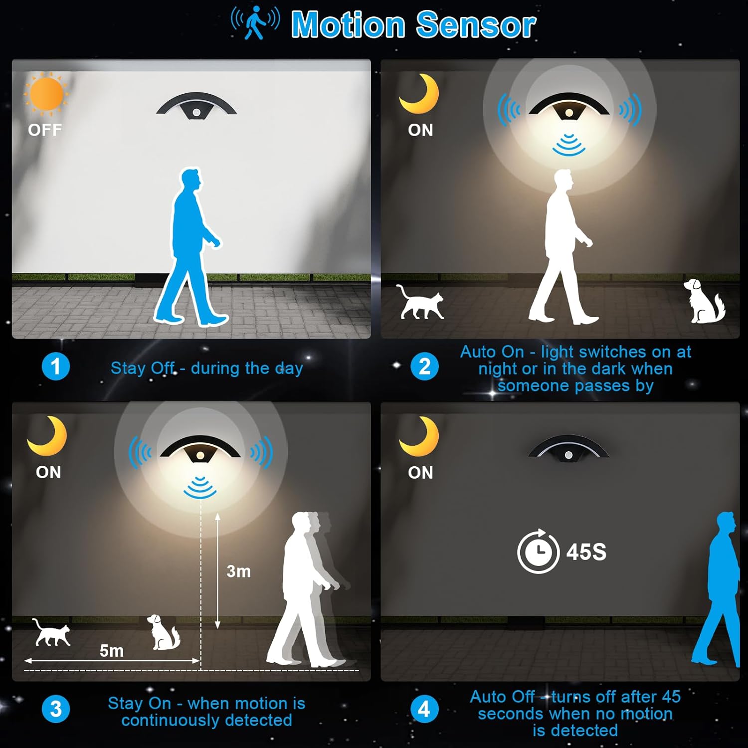 Această lampă de perete LED modernă pentru exterior combină design elegant cu senzor de mișcare inteligent, oferind iluminare sigură, eficientă din punct de vedere energetic și convenabilă pentru spații exterioare precum grădini, balcoane, intrări sau alei.