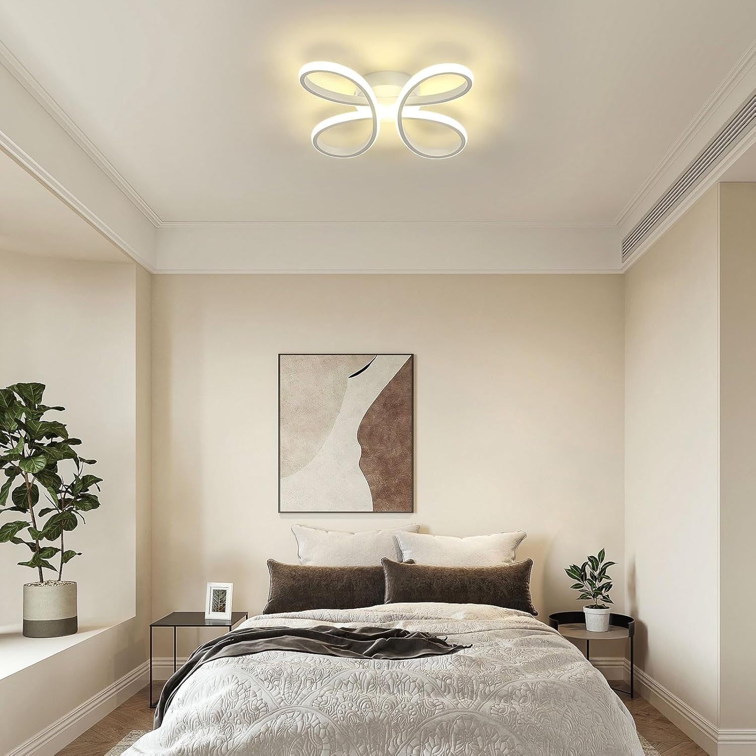 Această lustră LED modernă de 30W cu design floral creativ oferă lumină neutră (4500K), creând o atmosferă caldă, perfectă pentru living, dormitor, bucătărie sau hol.